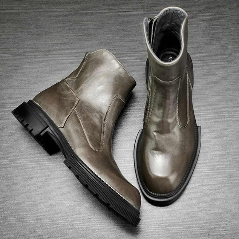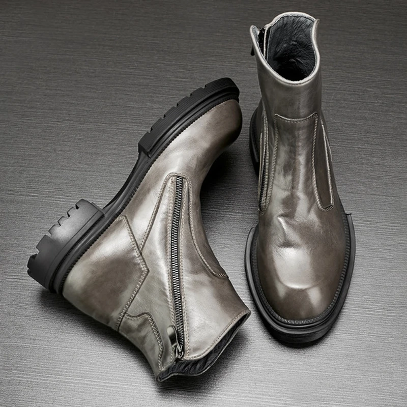 Frosted Genuine Leather Men’s Boots Refined Texture